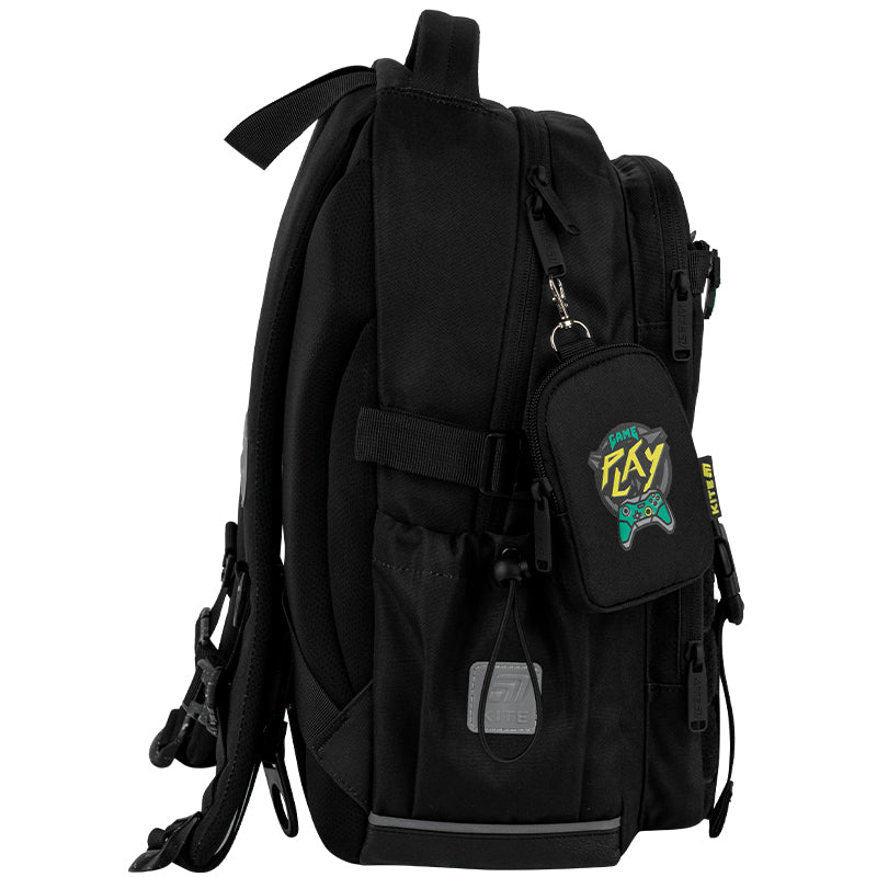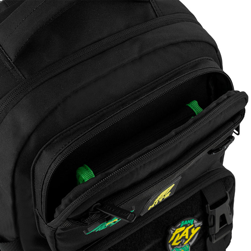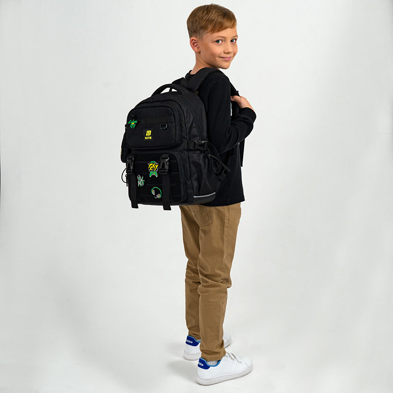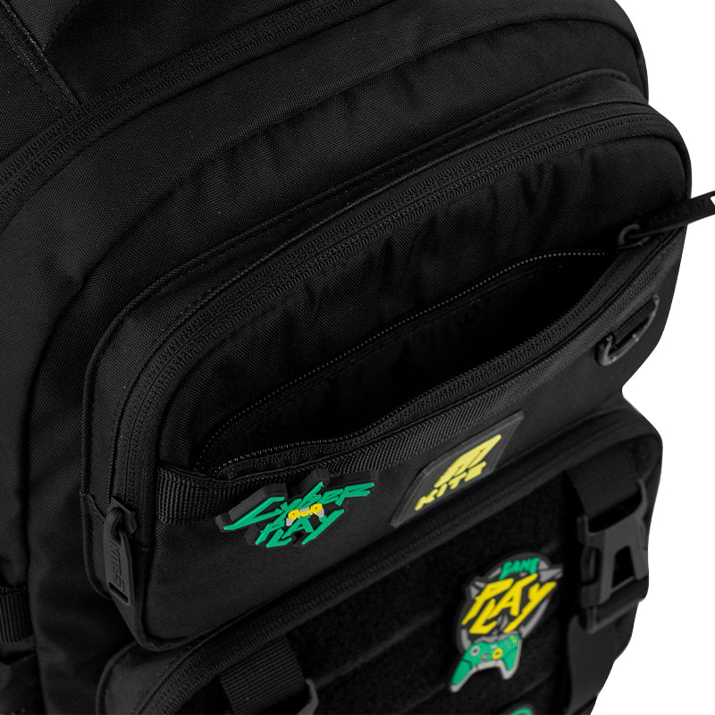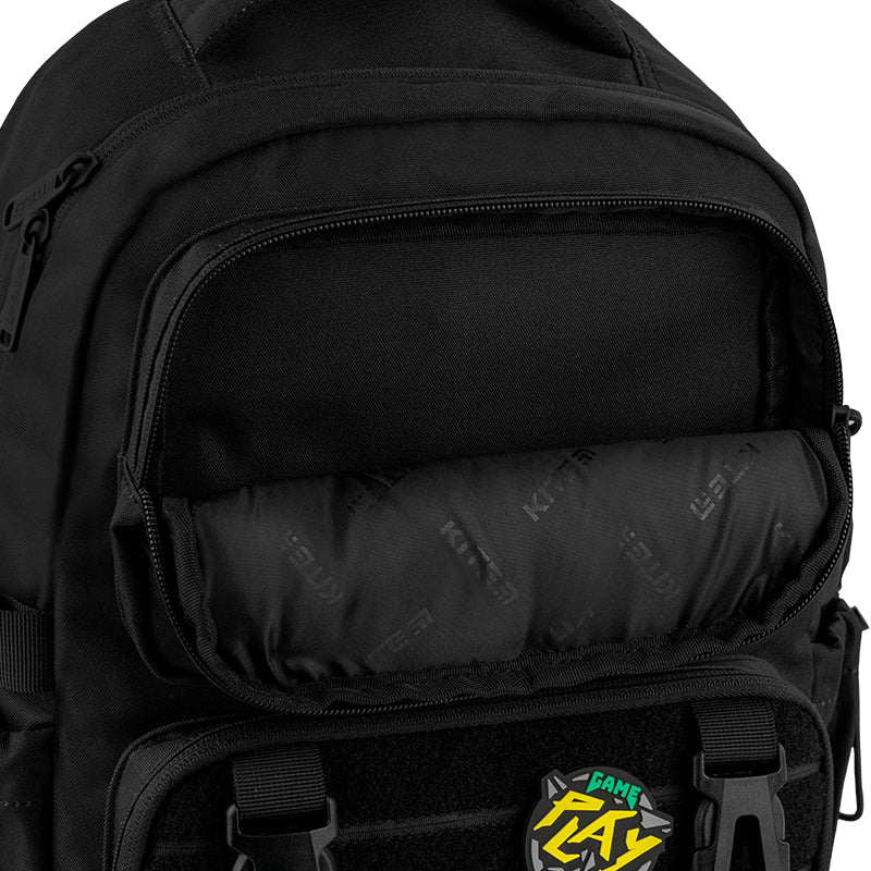 Фішка цього рюкзака — кишеня з липучкою, яка дає можливість легко змінювати дизайн під настрій. Бейджі кріпляться на липучку, і це дозволяє швидко кастомізувати рюкзак у будь-якому стилі.