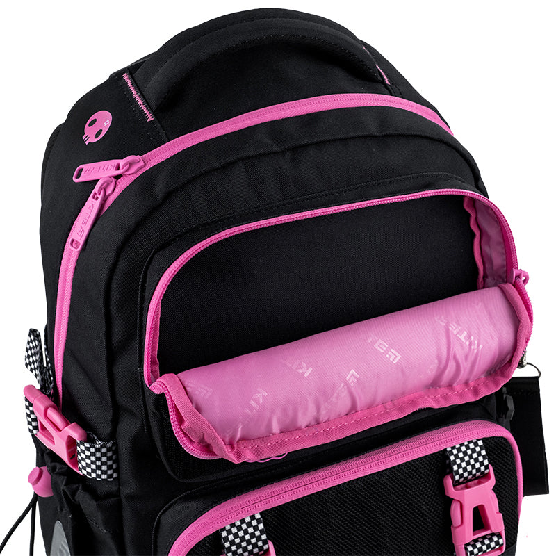Фішка цього рюкзака — кишеня з липучкою, яка дає можливість легко змінювати дизайн під настрій. Бейджі кріпляться на липучку, і це дозволяє швидко кастомізувати рюкзак у будь-якому стилі.