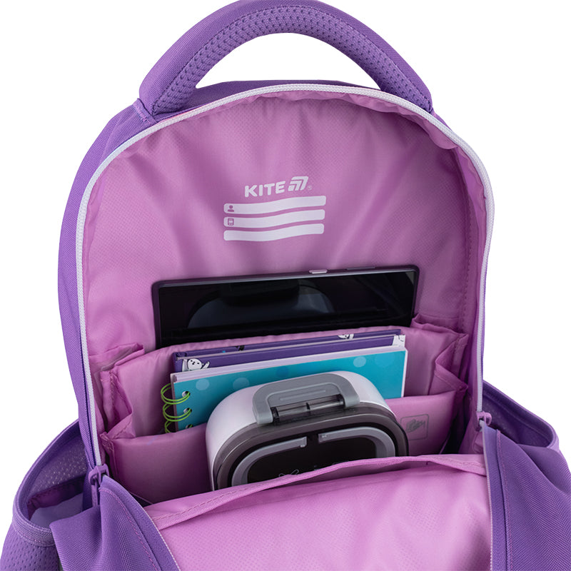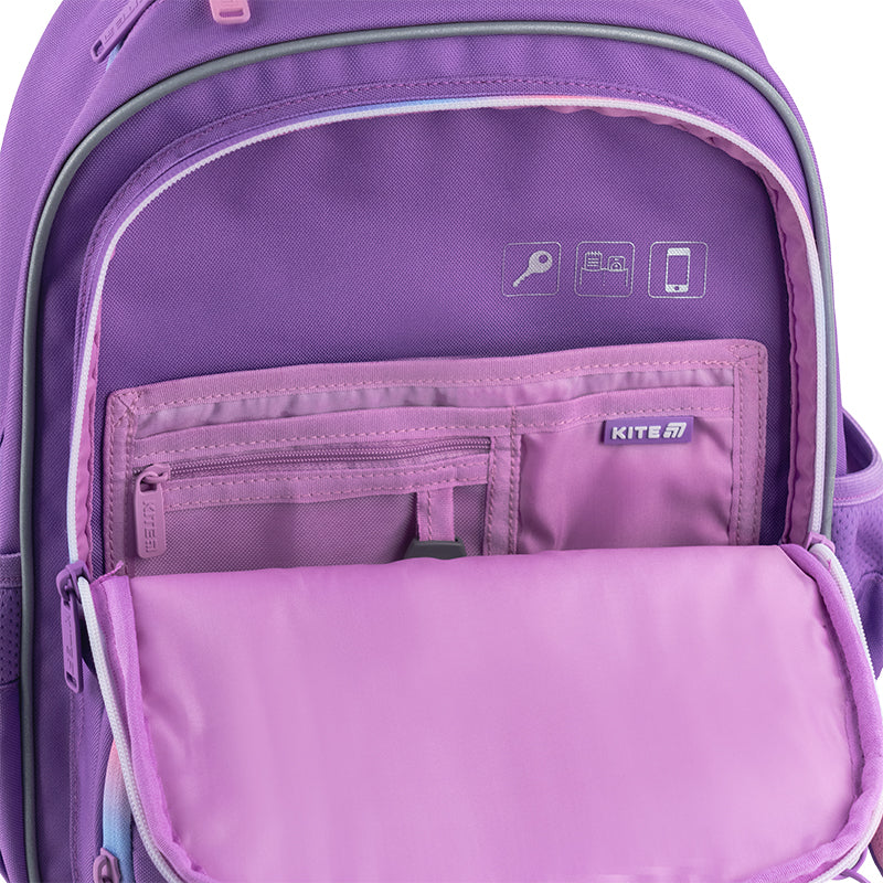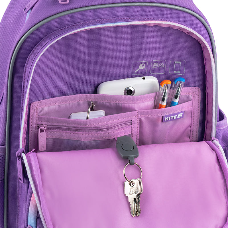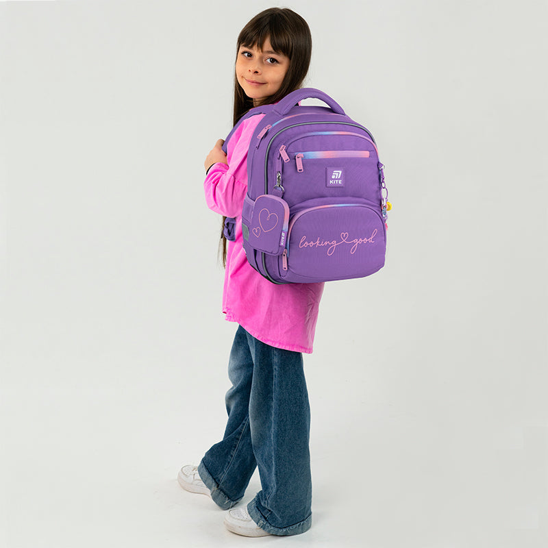 1. Рюкзак шкільний Kite K25-773M-2 – м'яка ортопедична модель з максимальною кількістю кишень. М’які рюкзаки мають полегшену вагу, що дуже важливо для наплічника, який дитина носитиме щодня. Ортопедична конструкція забезпечує максимальний комфорт для дитини та сприяє підтримці правильної постави. Модель рекомендована для дітей віком 6-10 років та зростом 130 – 145 см.