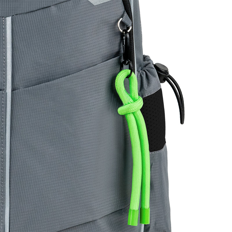 - декор: бейдж з комбінованих матеріалів, брелок-підвіска з паракорду та гуми на металевому карабіні.