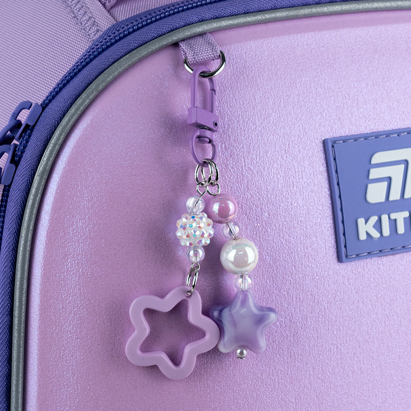 - декор: передня панель виконана із голографічної PU-тканини, аплікація з комбінованих матеріалів, вишивка, об'ємний друк, брелок-підвіска з намистинами.