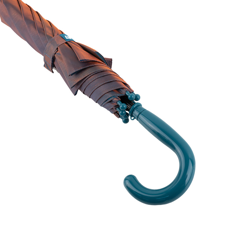 Це справжня магія кольору! Купол виконаний із унікальної тканини-хамелеон, яка переливається відтінками при зміні освітлення. Навіть у похмуру погоду вона створює яскравий настрій. Дощові дні більше не будуть сірими – з такою парасолькою кожна прогулянка стане яскравою пригодою!