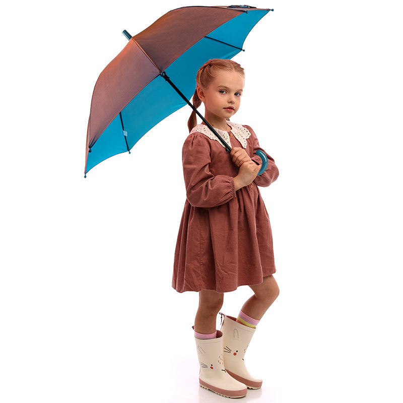 Пластикова ручка-гак – комфортна для дитячих долоньок, ідеально лягає в руку. З її допомогою парасольку зручно підвішувати під час зберігання. Щоб дитина не укололася, спиці захищені круглими пластиковими наконечниками; для практичності – точково пришиті до тканини.