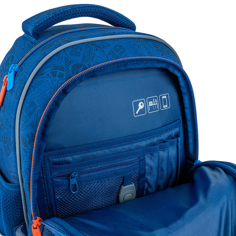 • внутрішня система роздільників з фіксуючою резинкою – для зошитів і книжок;