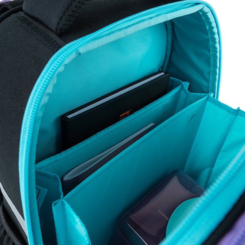 Модель схвалена німецьким Інститутом Здоров'я і Ергономіки IGR для школярів 6-10 років, зростом від 130 до 145 см. Каркасна форма допомагає непосидам систематизувати речі та вже з першого класу привчає до порядку.