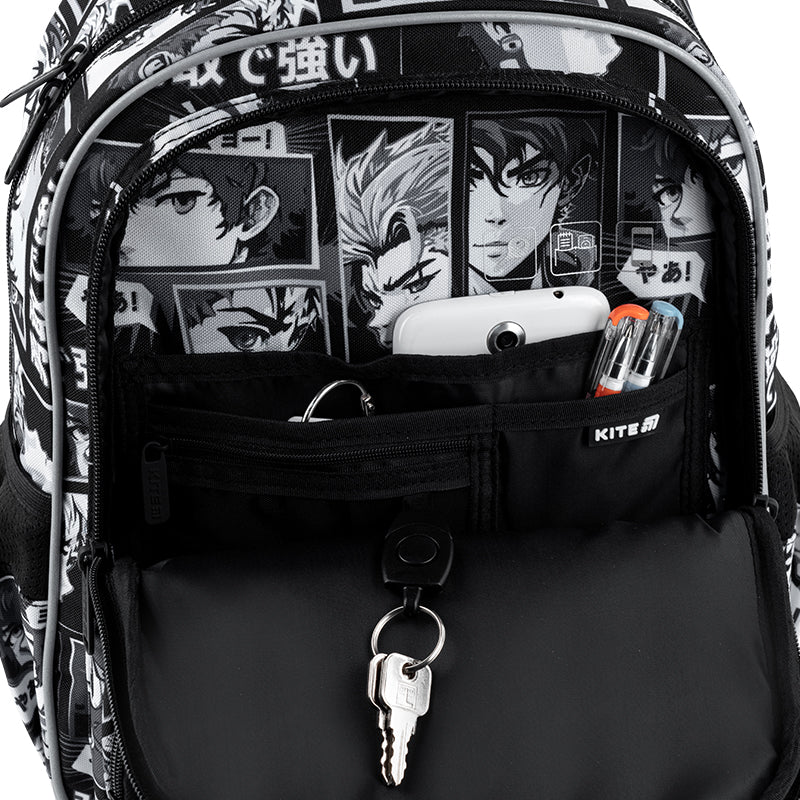 1. Рюкзак шкільний Kite K25-773M-4 – м'яка ортопедична модель з максимальною кількістю кишень. М’які рюкзаки мають полегшену вагу, що дуже важливо для наплічника, який дитина носитиме щодня. Ортопедична конструкція забезпечує максимальний комфорт для дитини та сприяє підтримці правильної постави. Модель рекомендована для дітей віком 6-10 років та зростом 130 – 145 см.