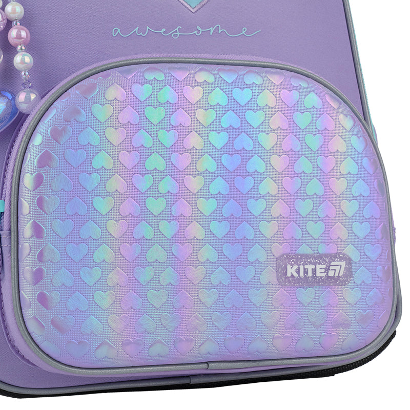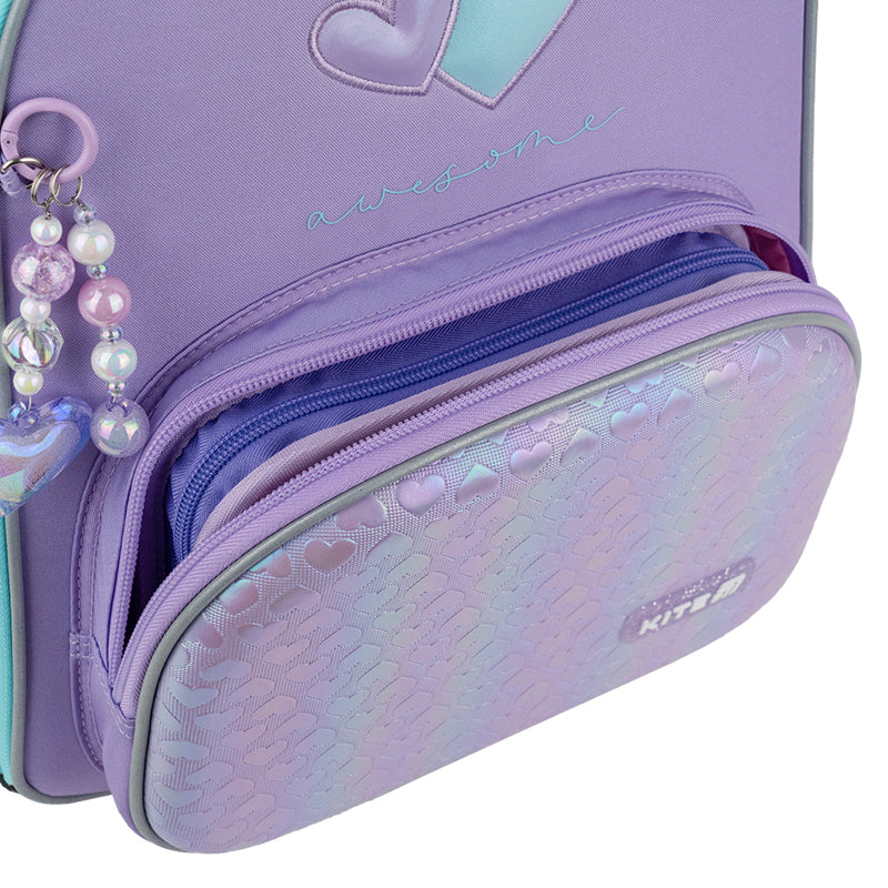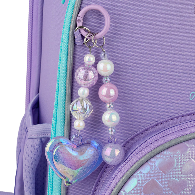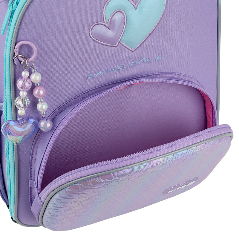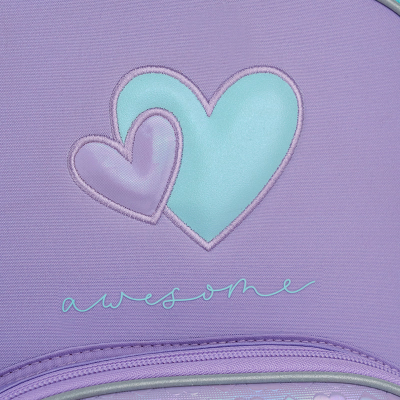 • декор: передня кишеня виконана із голографічної PU-тканини, аплікація з комбінованих матеріалів, вишивка, об'ємний друк, брелок-підвіска з намистинами та сердечком.