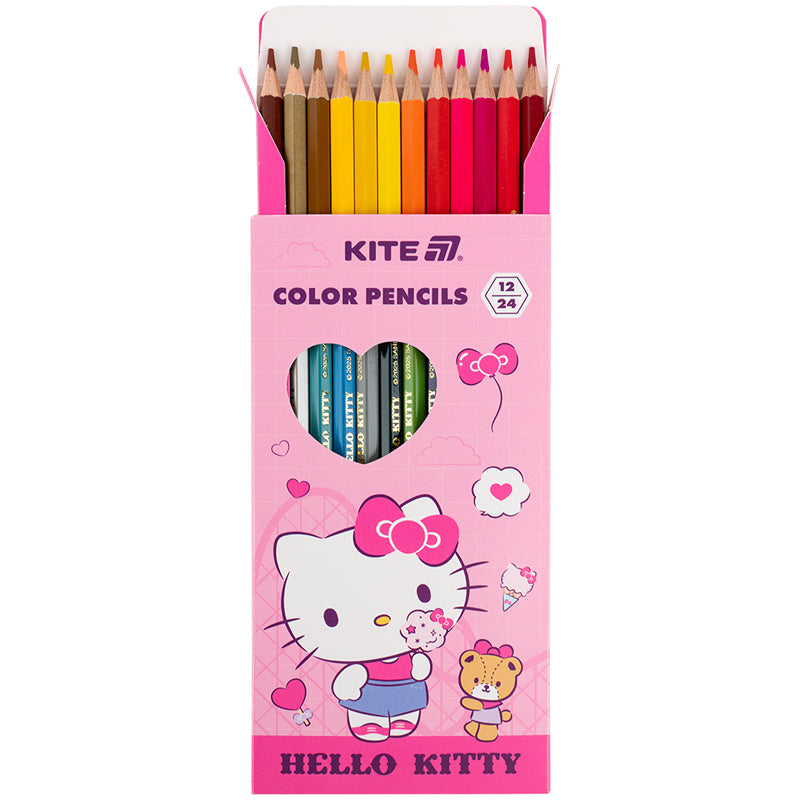 Яскрава картонна упаковка з персонажами мультфільму Hello Kitty перетворює набір олівців в особливий подарунок для творчої особистості. Малювати разом з улюбленими персонажами ще цікавіше!