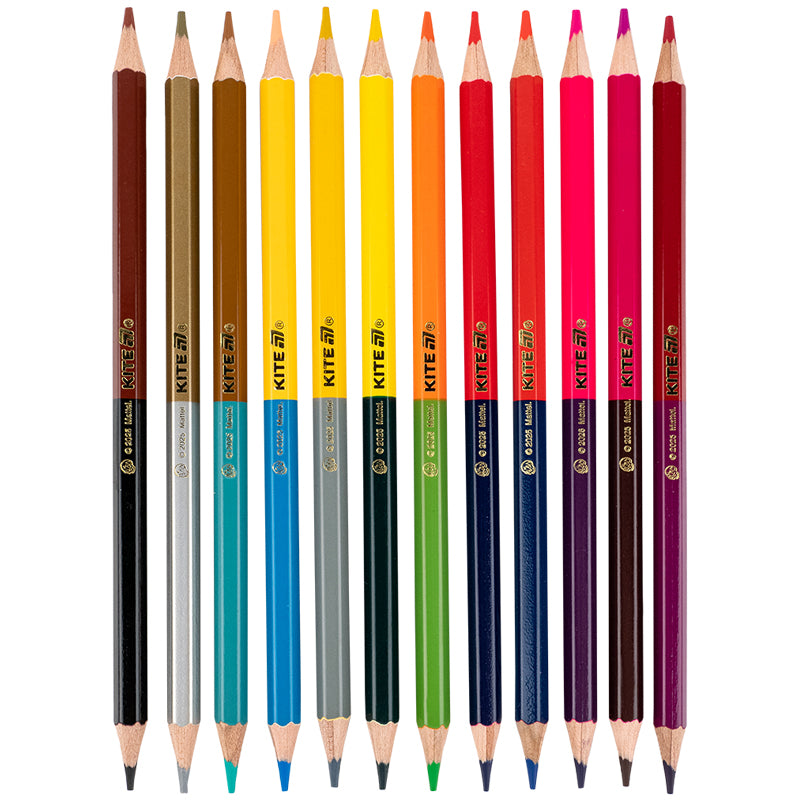 - 12 двосторонніх олівців займають мінімум місця в пеналі та мають широку палітру кольорів;