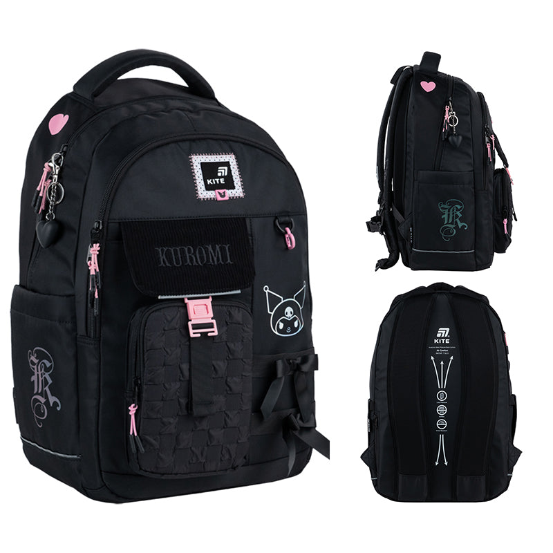 Трендова молодіжна модель – популярний хіт стріт-стайлу та яскрава зірка шкільних коридорів! Сміливий та яскравий дизайн в найулюбленішій ліцензії дівчат Kuromi допоможе навчатися із особливим задоволенням, з рюкзаком своєї мрії на плечах.