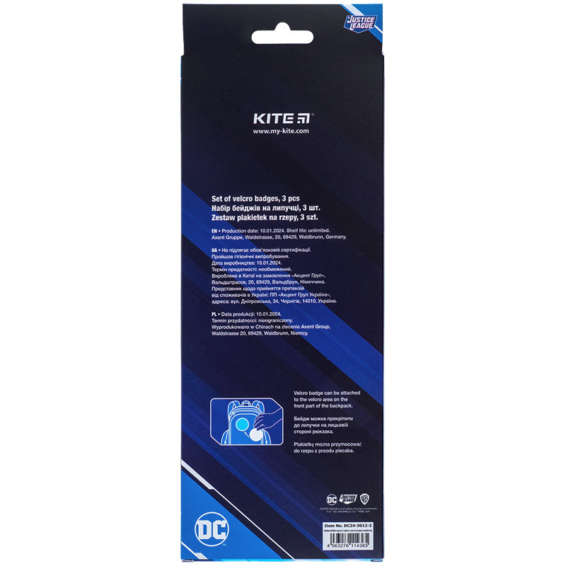 Набір бейджів на липучці Kite DC Comics Justice League DC24-3012-2, 3 шт.