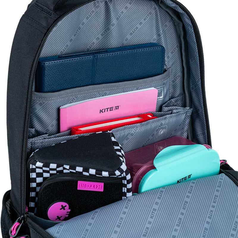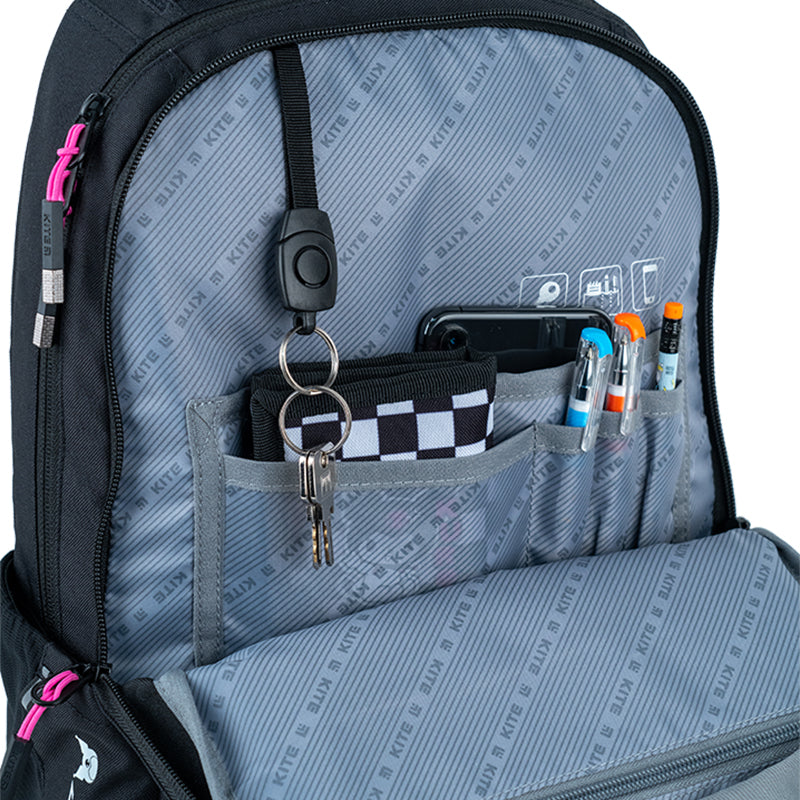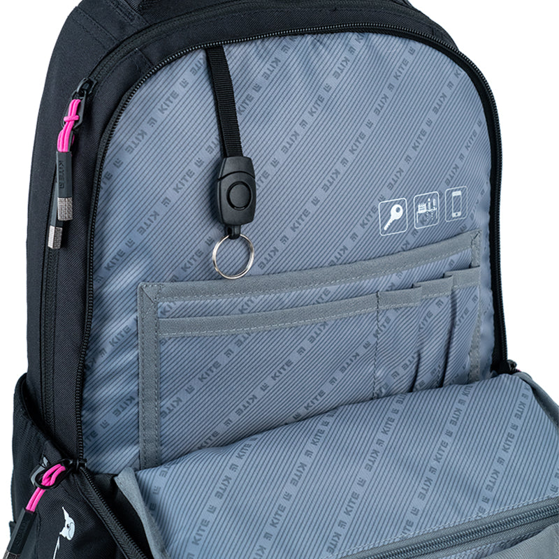 Рюкзак Kite HK24-2587M виконаний з міцного поліестеру. Трендова молодіжна модель в ліцензії Kuromi – популярний хіт стріт-стайлу та яскрава зірка шкільних коридорів! Неймовірно стильний молодіжний наплічник зачаровує привабливим дизайном і оригінальним фактурним декором.