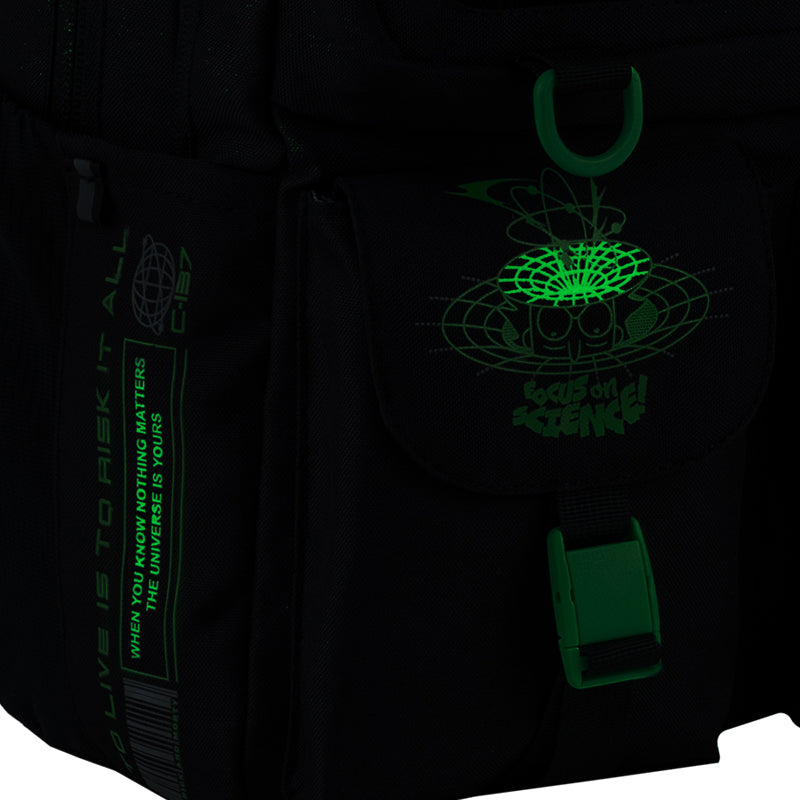 - декор: сітка на кишені; принт, що світиться в темряві; знімні гумові бейджі на липучках.