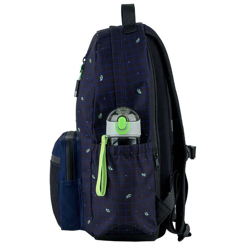 - бічна кишеня на резинці для невеликого термоса або пляшечки з водою;