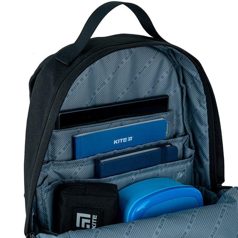 - зручні роздільники для книжок та зошитів з фіксуючою резинкою – для ідеальної організації простору та оптимального збалансування ваги вмісту;