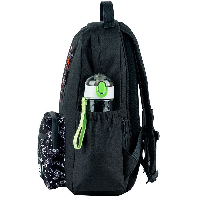 - бічна кишеня на резинці для невеликого термоса або пляшечки з водою;