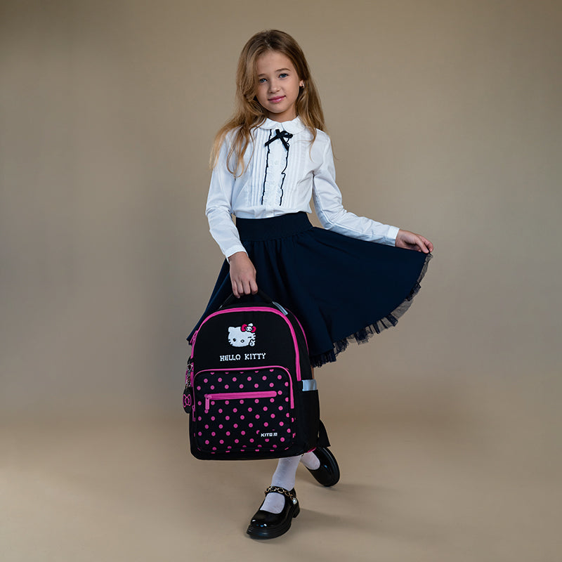 Шкільний ортопедичний рюкзак Kite HK24-770M виконаний із міцного поліестеру. Він легенький, компактний та місткий. Модель відповідає критеріям «ортопедії рюкзака» та рівномірно розподіляє навантаження. Продумана організація внутрішнього простору – гарантія бездоганного порядку та акуратного зберігання шкільного приладдя. Ще один важливий плюс – легкість! М'які рюкзаки, в середньому, на 200-300 г легші за каркасні. Модель рекомендована для школярів зростом 130 – 145 см (6-10 років). Ліцензійний дизайн Hello Kitty ефектно прикрасить образ та подарує натхнення для продуктивного навчання.