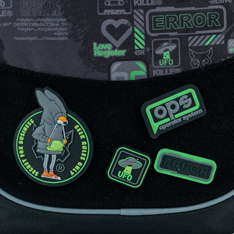 • декор: 4 знімні гумові бейджі на липучці, підвіска-брелок.